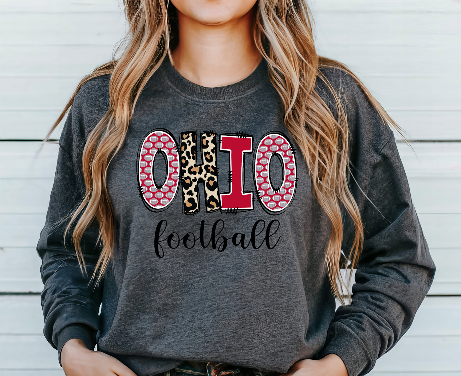 Show your love for football and Ohio pride with this bold and stylish crewneck! Featuring a fun mix of patterns and vibrant lettering, this cozy sweatshirt is perfect for game days or any casual outing.